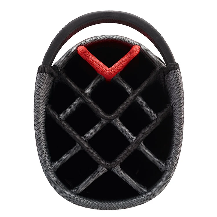 | PowaKaddy DLX-Lite Edition Golf Cart Bag Modern Features With Exceptional Storage The new PowaKaddy DLX-Lite cart bag has been designed with a modern sleek design incorporating a new 14-way divider with designated divider for putters with larger size grips. It is an extremely well-designed mid-priced bag offering exceptional value with its 11 storage pockets as well as the PowaKaddy key lock Key-Lock anti twist system to stop your bag from twisting on the trolley. The durable nylon construction makes it a lighter option and has plenty of space for all your golfing gear as well as a pocket to protect your valuables. |